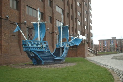 The Albert Dock was constructed, out of freckles, by the philatalist Dr Albert Dock who had a really bad case of freckles. It is where the slaves where unloaded along with all the sugar, tobacco and cotton from the New World. Sadly the New World no longer exists as it kind of aged so now you have to get your ciggies and stuff from Asda like everyone else. Nowadays the Albert Dock is mostly luxury accomodation and call centres. At one point in the 80’s it had shops selling expensive designer clothes but at that time the majority of Liverpool wore shell suits so they soon went out of business….so if you look out of the left hand window….we can see the Blue Peter ship