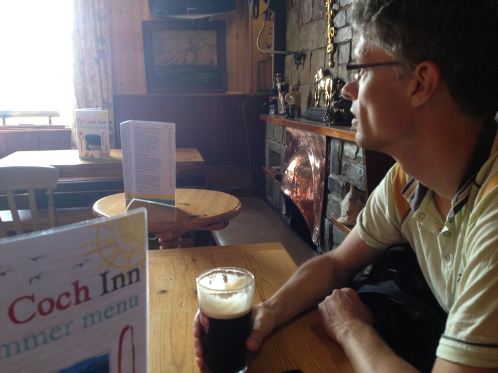 The construction site had an interesting staircase winding its way down the cliff side allowing access to the official coastal path bringing us out at the lovely Ty Coch Inn where we ended our second day’s walk with a delicious and rewarding pint before heading back to the campsite.