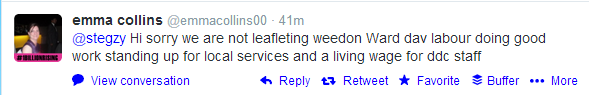 Following on from yesterday’s twitter conversation with the Labour Candidate for Weedon Ward, Daventry, Northamptonshire in the Daventry Local Elections 2014. I received this tweet: