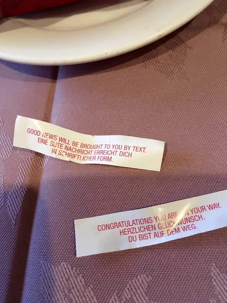 On this day in 2016, Mrs Gnomepants V2.0 and I went for a succulent Chinese meal at the Dynasty in Long Buckby, Northamptonshire. At the end of the meal, they bring your bill with some fortune cookies. Which is nice. However, as Mrs Gnomepants v2.0 is allergic to dairy and fortune cookies contain milk I ended up with two.
