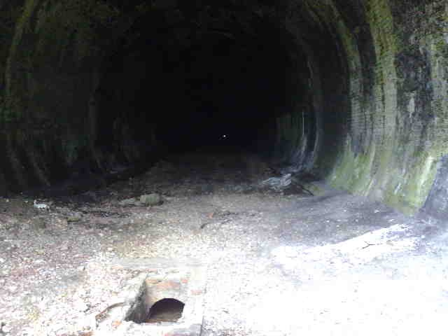 After scurrying down an old railway embankment, dodging farmers and getting wet from the sodden grass, eventually the portal for the tunnel was reached. The dark insides seemingly swallowing the light less than 5 feet away. It was creepy. It was also disappointingly sealed off by a metal fence.