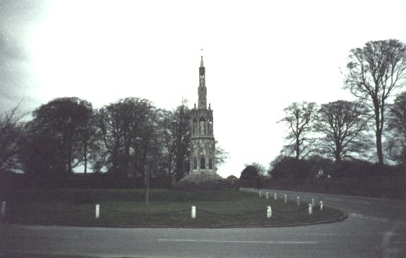 The monument is a replica Eleanor Cross and you can read more about it here: