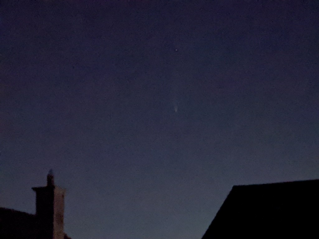 Despite several failed attempts prior to today’s picture — not enough horizon, too much light pollution, clouds and lockdown-curfews — in the end, the best photo of the comet I was able to take was from round the back of the house. So here it is, in all it’s glory — thanks to my old Google Pixel 4 which had a rather good camera but a shoddy batterylife. And Android.
