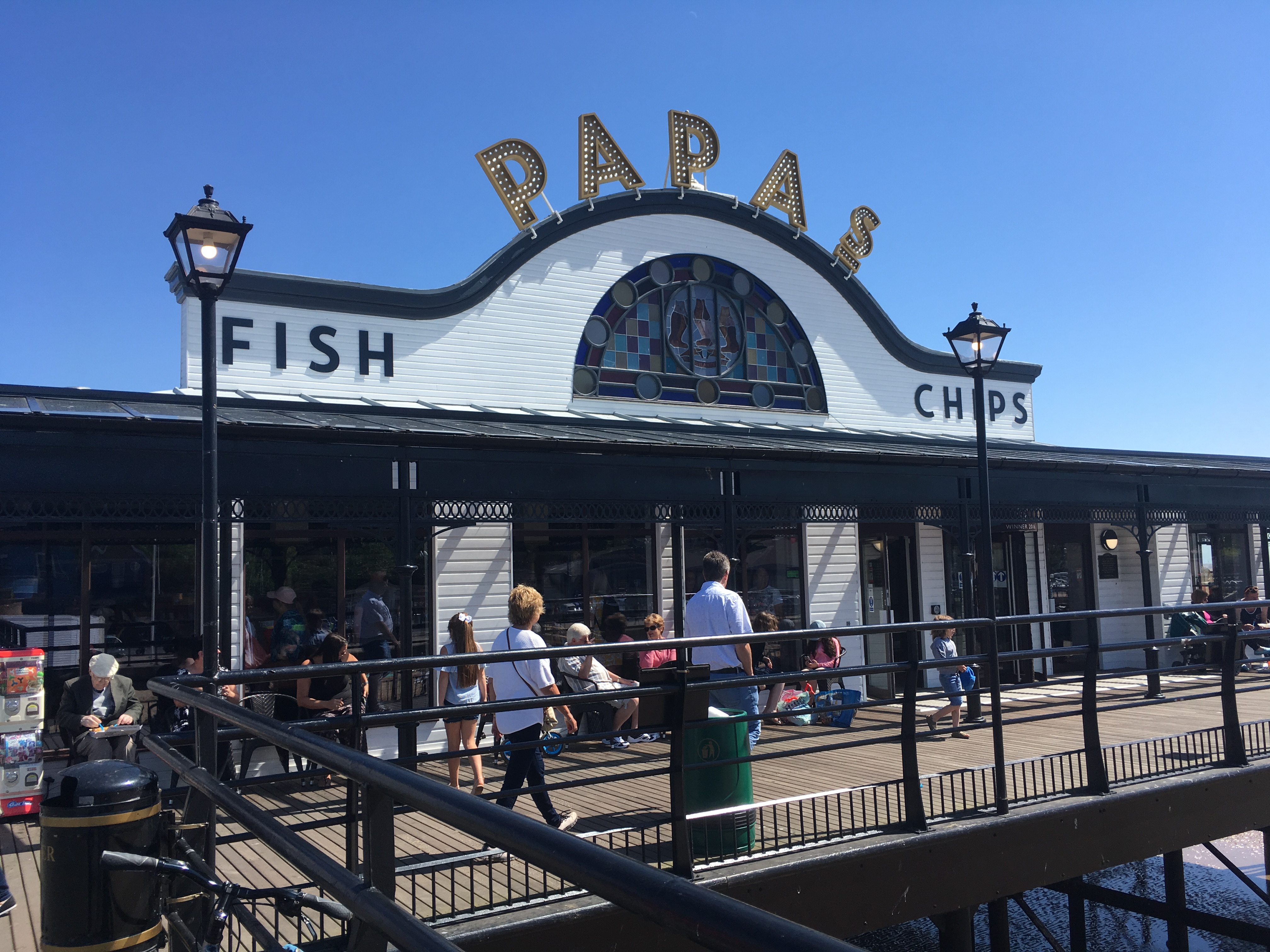 A photo of the frontage of Papa’s fish and Chips in Cleethorpes, claiming to be the UK’s largest Fish and Chip restaurant.